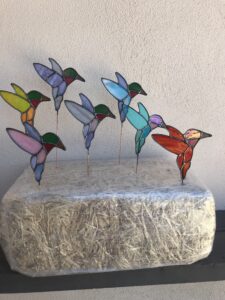 Gary has beautiful butterfly and hummingbird-shaped garden stakes for spring.