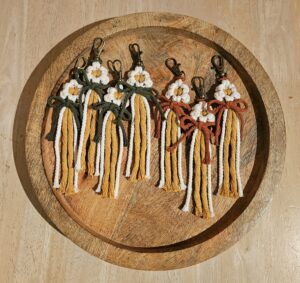 New air plant hangers and flower key chains.