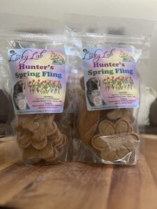 Special spring cookies for dogs, both frosted and unfrosted.
