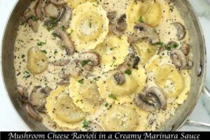 Their newest prepared meal is a mushroom ravioli in a creamy marinara sauce with parmesan cheese.