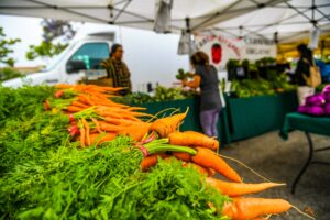 In addition to the freshest fruits and vegetables, you’ll find fresh coffee, home-kitchen baked goods, freshly baked bread, cheese, cookies, pastries, jam, honey, nuts, dried fruit, organic eggs, fresh flowers, and live garden plants, hummus and salsa, pasta and sauce, fresh local seafood, seasoning blends for dips, marinades, and rubs, microgreens, mushrooms, tamales, soups, tea, yogurt, and sausage.